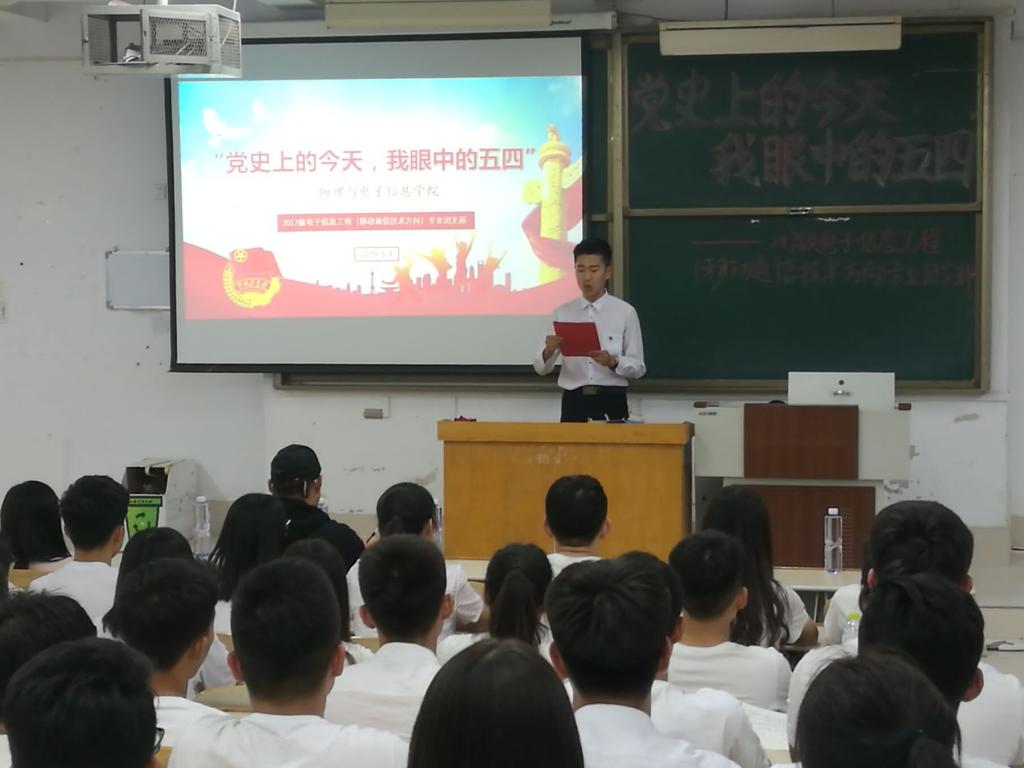 “青春,是歌,是画,是最炫丽的华章”,九十九年前的今天,有一批意气风发的青年用热血和生命谱写了一曲最壮丽的青春之歌,绘就了一幅最宏伟的青春图画。在五四青年节到来之际,为使同学们更加清晰地了解五四青年节的由来,beat365在线唯一官网2017级电子信息工程(移动通信技术方向)团支部于2018年5月4日晚七点在求实楼4008教室举办了“党史上的今天,我眼中的五四”主题班会活动。