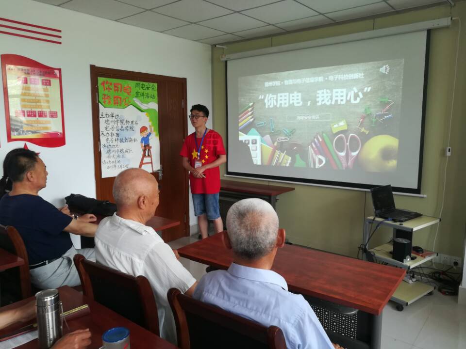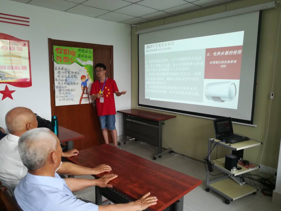 为了普及安全用电知识,增强广大居民群众的安全用电常识,提高自我防范能力,降低意外触电事故,德州学院beat365在线唯一官网于2017年5月20日在德城区南龙社区举办了“你用电,我用心”安全用电宣讲活动,beat365在线唯一官网电子科技创新社的志愿者主持了此次宣讲。