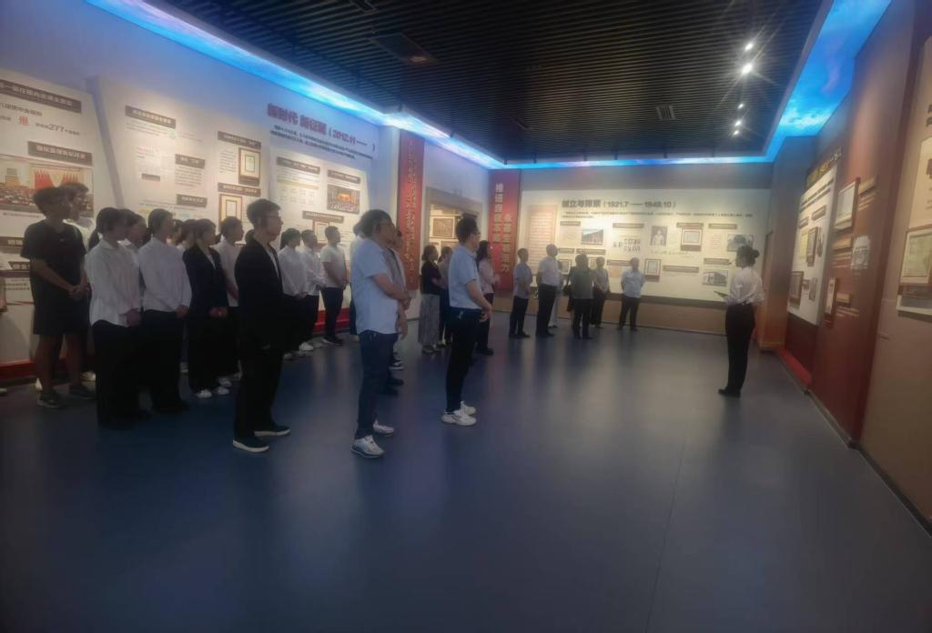 重温庄严誓词,永葆赤诚初心。师生党员在教育馆尾厅内重温了入党誓词。面对鲜红的党旗,大家高举右拳,庄严宣誓,铿锵有力的誓言在展厅内回荡,感悟初心使命。