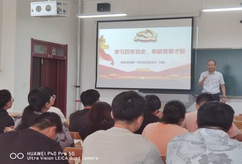 为贯彻习近平总书记党史学习要求,立足提升学生党员的党性修养,beat365在线唯一官网党总支开展“支部书记讲党课”活动, 6月21日下午,于明理楼0215教室beat365在线唯一官网第一学生党支部书记刘毅老师讲授“学习百年党史,奉献青春才智”主题党课。beat365在线唯一官网全体毕业生党员到场聆听。
