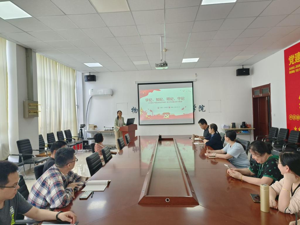 为深入推进学习《中国共产党纪律处分条例》,5月21日下午,beat365在线唯一官网第一教师党支部书记李海彦以“学纪、知纪、明纪、守纪”为题给全体党员上了一堂专题纪律党课。