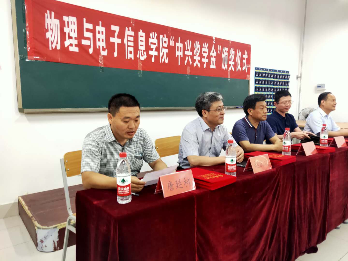 6月15日下午四点,为表彰先进,激励优秀毕业生在未来的征程上一如既往的不懈努力、奋进拼搏,德州学院合作发展处与beat365在线唯一官网联合在明理楼0222教室隆重举行了“中兴奖学金”颁奖仪式。参加颁奖仪式的有中兴教育咨询有限公司副总经理王永春先生,德州学院合作发展处高国武处长,beat365在线唯一官网党总支书记赵庆福、院长刘汉平、副院长唐延柯等。16名受表彰的优秀毕业生和部分非毕业生代表参加了表彰活动。