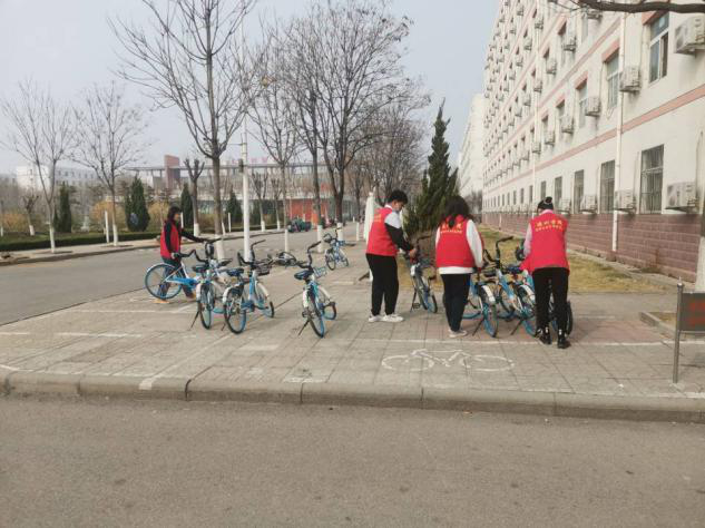 志愿者活动中,志愿者们首先详细了解了共享单车的正确摆放区域,同时把停放在草地、马路旁的单车摆放到指定的区域,并向周围的同学宣传了本次活动的目的并倡导同学们规范停放单车。经过志愿者们的努力劳动后,共享单车陆续回归原位志愿者们的行动得到了周围同学的大力赞许。看着一排排整齐、有序的共享单车摆放在路边,志愿者们心里也生出浓浓的自豪感。最后,志愿者们和整齐摆放的共享单车合影留念,度过了开心而充实的一天。