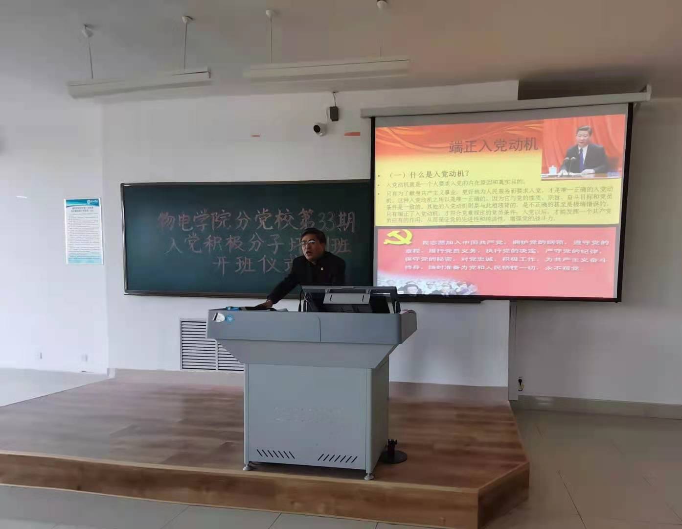 4月6日,beat365在线唯一官网在明理楼0126教室隆重举行了第三十三期入党积极分子培训开班仪式,开班仪式由党总支书记赵庆福主持。在开班仪式上,赵庆福书记做了动员讲话,赵书记指出,各学员应该树立正确的入党动机,明确参加党课学习的目的以及入党的目的,早日成为可以担当大任的新时代青年。