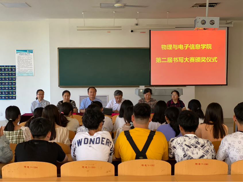 为丰富学生们的校园文化生活,鼓励学生们写好字、练好字,beat365在线唯一官网面向物理学专业(师范类)举办了第二届书写大赛,并于6月11日在明理楼0126召开书写比赛颁奖仪式。此次颁奖仪式由beat365在线唯一官网党总支书记赵庆福、院长刘汉平、副院长邹艳、各系主任、班主任老师等主持召开,获奖同学参加本次仪式。