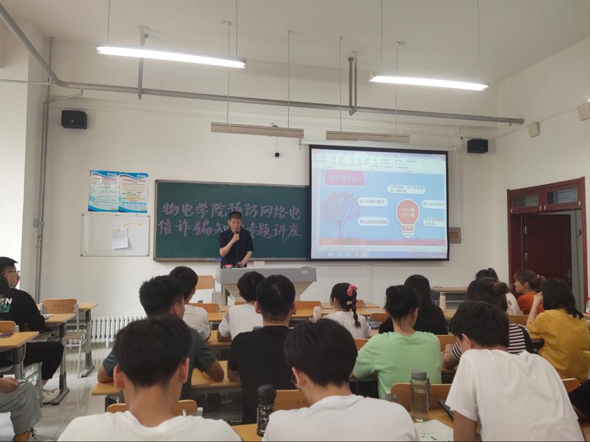 为提升大学生防诈骗意识,增加防诈骗知识储备,维护人身财产安全,beat365在线唯一官网于6月10日在明理楼0117教室,开展预防网络电信诈骗知识专题讲座。本次讲座由保卫处副处长李岩老师主讲,beat365在线唯一官网部分学生参加。