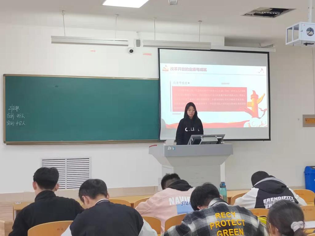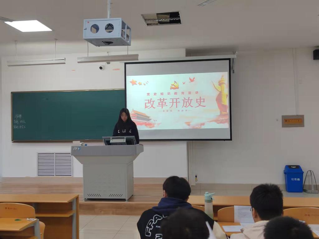 此次宣讲活动中,宣讲员高晓宇从改革开放的业绩与成就、改革开放成功的原因、改革开放未来的思考三个方面带领同学们认识了党领导下的改革开放历程与成就。同学们认识到党用实践证明改革开放是当代中国发展进步的动力源泉,也是坚持发展中国特色社会主义的必由之路,通过分析改革开放的成功原因等引出同学们对新时代改革开放的思考。