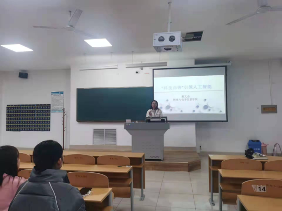 董文会院长从人工智能的发展,应用以及对人工智能的思考三个方面深入浅出、形象生动地进行宣讲,并以人工智能发展的具体脉络为时间线,向同学们生动的展示了人工智能从诞生到广泛应用的具体过程。董文会院长对人工智能在哲学、道德和实践等方面的争议进行深刻的剖析,让大家从历史和现实两个维度进一步全面深刻地认识人工智能与人类社会的关系。