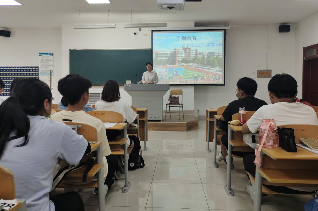 5月31日,德州市第九中学李玉霞副校长为学生进行了班级管理工作的指导,她结合自身经历,从强制者、改造者、陪伴者、温暖者及全能者五个经历历程向学生讲解了班级管理的相关知识,鼓励同学们做一个有理想信念、道德情操、扎实学识以及仁爱之心的“四有好老师”。