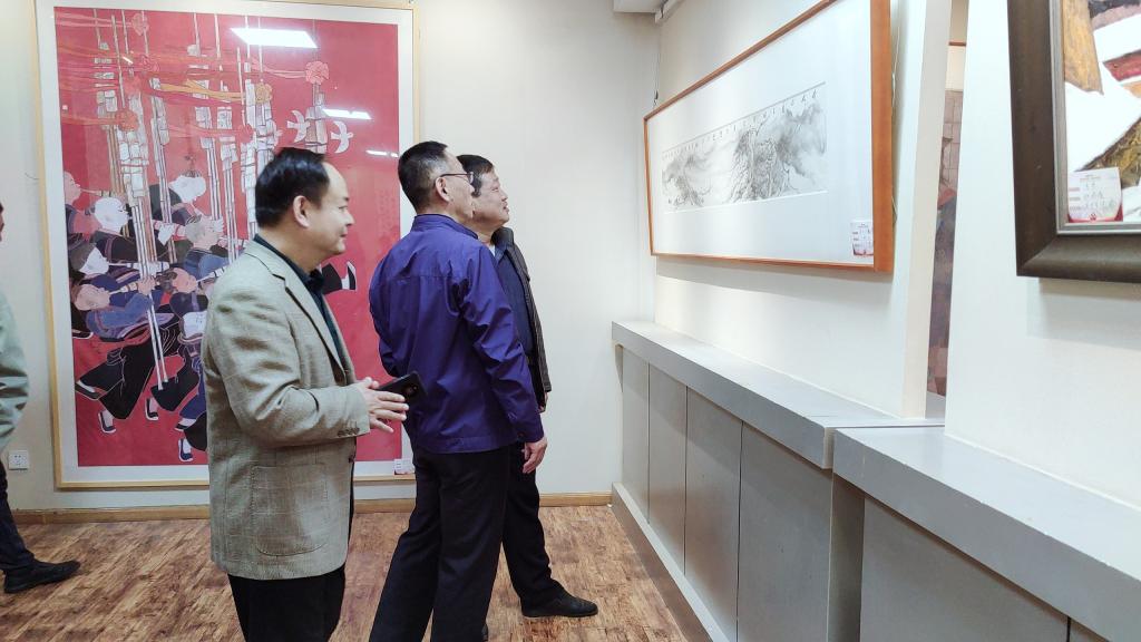 在美术学院董书记的引导及解说下,教职工认真参观了每一幅优秀书画作品,感受其艺术美、了解其内涵,将师德师风建设与不忘初心、牢记使命,艰苦奋斗的党的二十大精神结合起来,进行了一次艺术熏陶和精神洗礼。