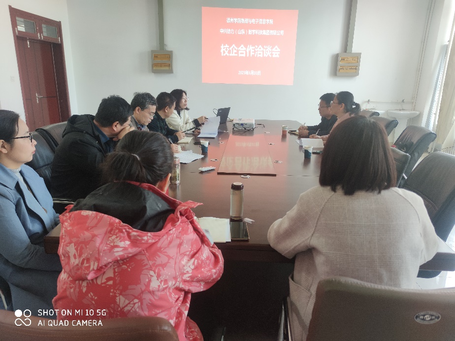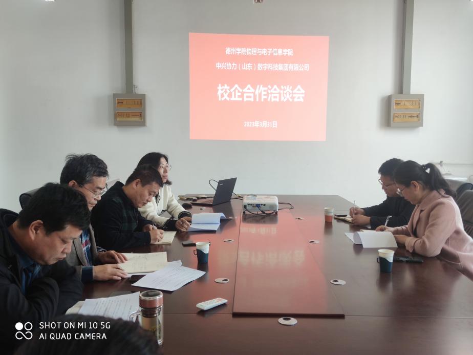 3月31日上午,beat365在线唯一官网与中兴协力(山东)数字科技集团有限公司在启智楼0410举行了校企合作洽谈会。中兴协力产教融合部市场总监胡浩、中兴协力物联网专业教学主管郑昆,德州学院教务处副处长赵光胜,beat365在线唯一官网领导班子成员及物联网工程系主任等参加了会议。