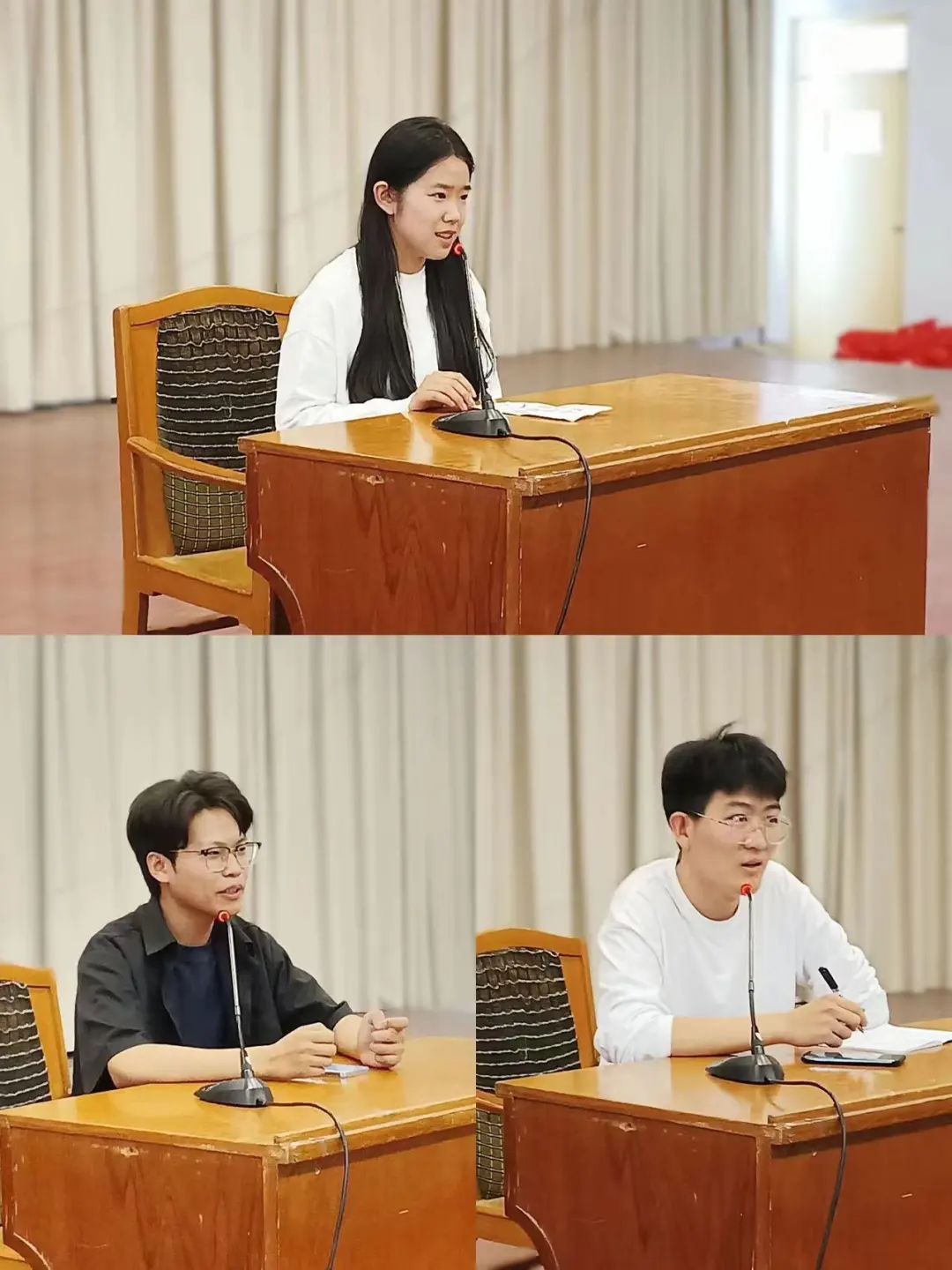 (2)面试礼仪:坐姿端正,微笑面对考官,挺拔的坐姿和明亮而坚定的眼神能展示出良好的精神面貌;线下面试的优势就是可以和老师进行眼神交流,这个时候一定不要害羞,眼神不要闪躲,保持镇定,从容不迫。