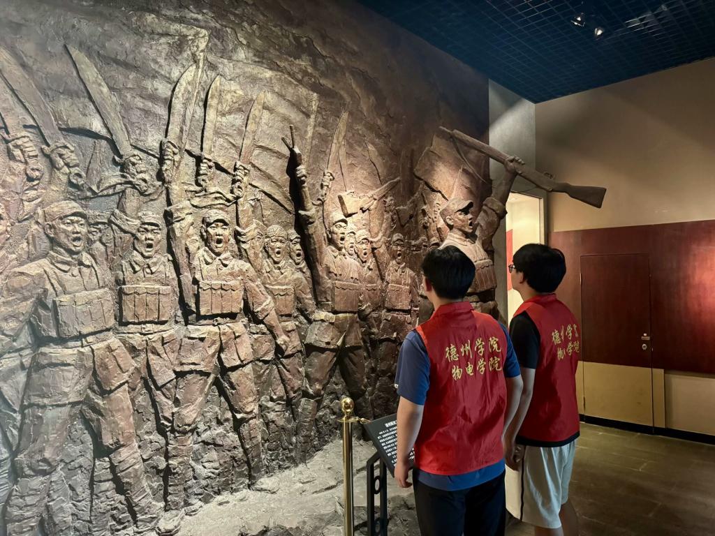 活动当日,同学们有序参观了"历史足迹""文明遗珠"等特色展厅。在"历史足迹"展厅,丰富的文物展品、详实的文献资料与逼真的场景复原相得益彰,勾勒出德州从远古到近现代的发展脉络。通过这些珍贵的历史印记,同学们仿若穿梭时空,真切感受不同历史时期德州的政治格局、经济发展与文化特色。移步至"文明遗珠"展厅,精美的文物珍品令人驻足赞叹,每一件展品都凝聚着古代劳动人民的智慧与匠心,见证着德州在中华文明发展进程中的独特贡献。同学们驻足欣赏,细细品味,沉浸在历史文化的海洋中,感受着中华文明的博大精深。