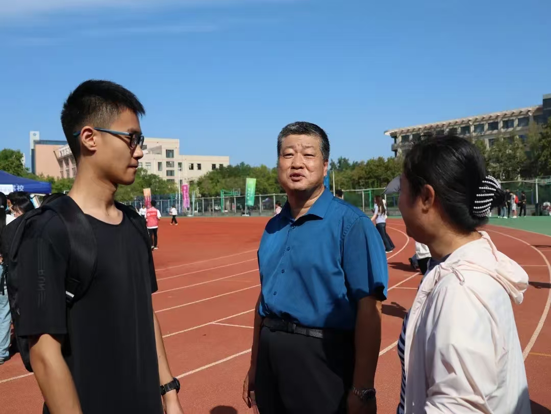 同新生和家长们展开亲切交流,细致解答相关疑问