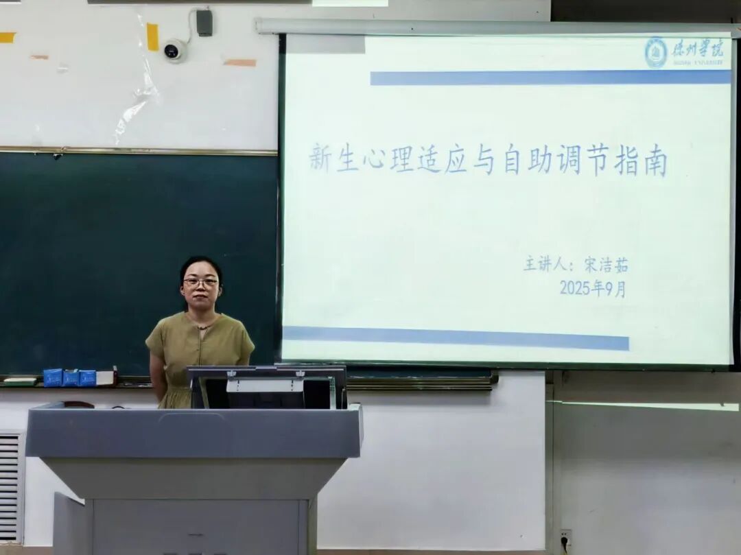 为帮助2025级新生适应大学环境、提升心理调适能力,9月10日,beat365在线唯一官网特邀学校心理健康教育与咨询中心心理咨询师宋洁茹老师,于明理楼126开展新生心理适应与自助调节指南专题教育活动。