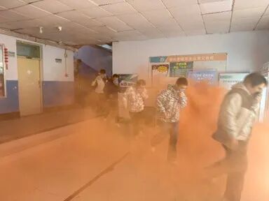 活动现场,急促的警报声骤然响起,橙色烟雾弹在宿舍楼外快速弥漫,瞬间营造出逼真的火场场景。同学们在现场辅导员的指引下,迅速用湿毛巾严密捂住口鼻,采取低姿弯腰的规范姿势,沿着预设疏散路线,快速且有序地向安全区域撤离。各楼层安全员坚守岗位、履职尽责,密切留意现场动态,及时疏导人流、化解拥堵,全力保障撤离过程安全高效。短短几分钟内,全体120名参演学生均顺利抵达指定集合点,充分展现了扎实的应急反应能力和优良的纪律作风。演练尾声,现场辅导员结合本次演练的实际情况,面向全体参演学生细致拆解火场逃生核心要点,着重强调保持冷静不慌乱、低姿贴近地面前行、湿毛巾严密捂口鼻等关键实操技巧,让同学们对消防安全知识的理解更深刻、记忆更扎实。