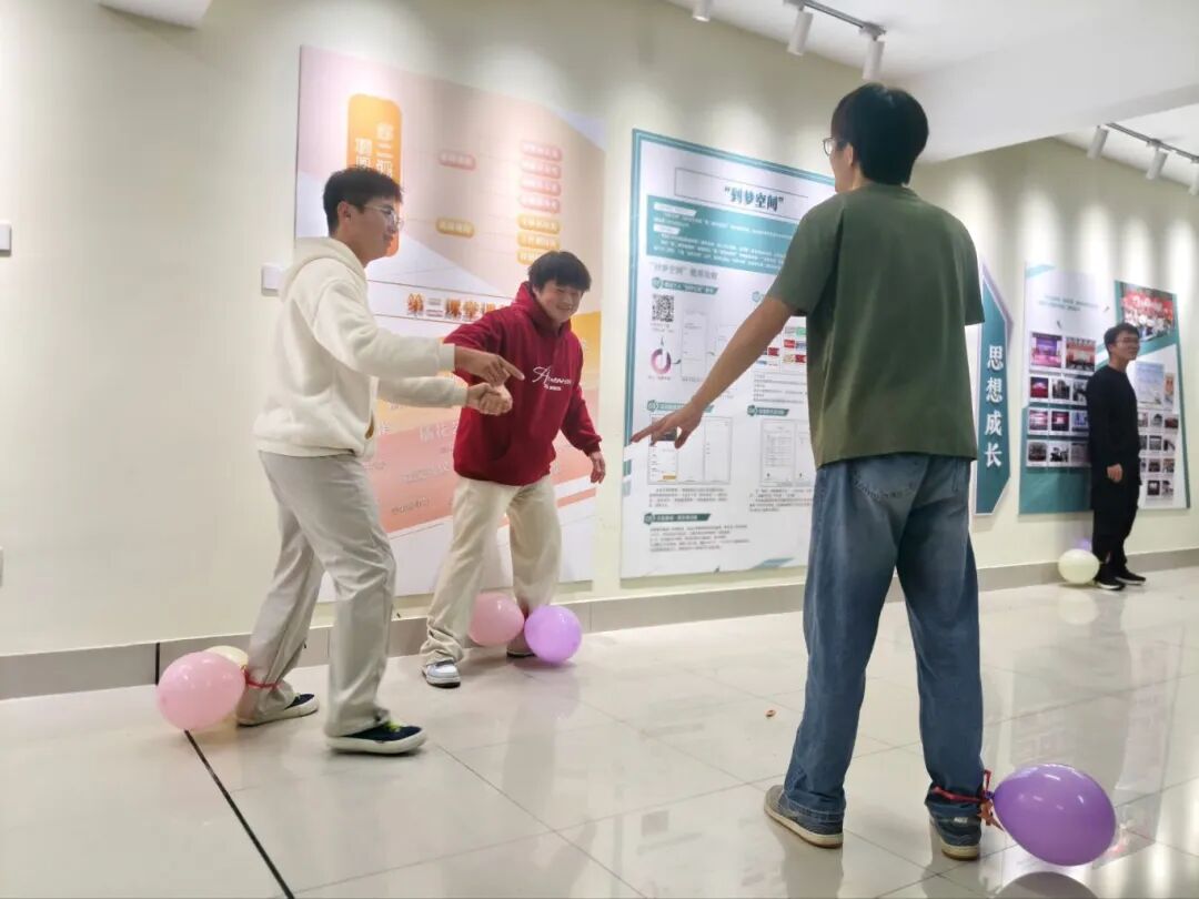 本次心理沙龙在轻松活泼的氛围中温情启幕。各部门依次登台,展示专属队徽、唱响定制队歌,在默契共鸣中凝聚起集体向心力。随后,在主持人的热情引导下,“听歌识曲”“反口令”“加字游戏”“踩气球”“害你在心口难开”“蒙眼互打”等趣味互动游戏接连上演——这些充满欢乐的环节,既是大家释放心理压力、舒缓身心的有效途径,更打破了部门壁垒,让成员们在协作与欢笑中拉近彼此距离,深化了集体荣誉感。现场同学们全情投入、热情高涨,既有个人风采的亮眼绽放,更有团队协作的暖心瞬间,处处洋溢着青春活力。活动尾声,全体成员自发行动、共同整理场地,用细致入微的暖心举动,为本次心理沙龙画上了圆满而温暖的句号。