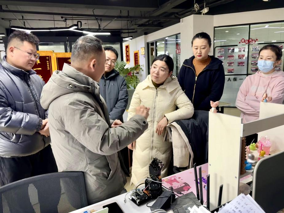 华清远见集团副总裁兼济南分公司总经理李鹏、济南分公司副总经理孙安琪、运营总监王伟伟热情接待了我院。双方参观了华清远见济南分公司的教学与运营场地,随后围绕人才培养、实习就业合作、校企课程共建等议题展开座谈交流,深入探讨了电子信息、物联网工程专业人才的培养方向与企业岗位需求的契合点。