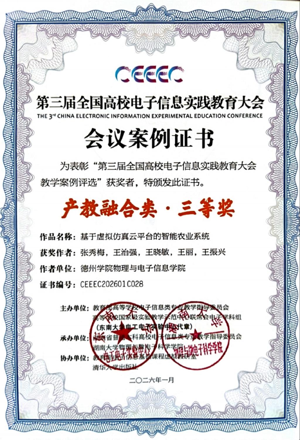 2026年1月10日至11日,第三届全国高校电子信息实践教育大会在长沙召开。我院教师在同期举办的全国高校电子信息类专项教学案例竞赛中表现突出,斩获三等奖3项、优秀奖2项,获奖数量在同类院校中名列前茅。