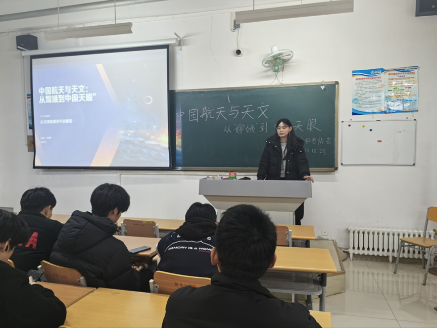 为普及天文与航天领域的前沿知识,激发学生对宇宙探索与空间科技的求知热情,12 月 23 日,beat365在线唯一官网天文爱好者协会在明理楼 223 教室举办 “星途逐梦,探索苍穹” 主题活动。