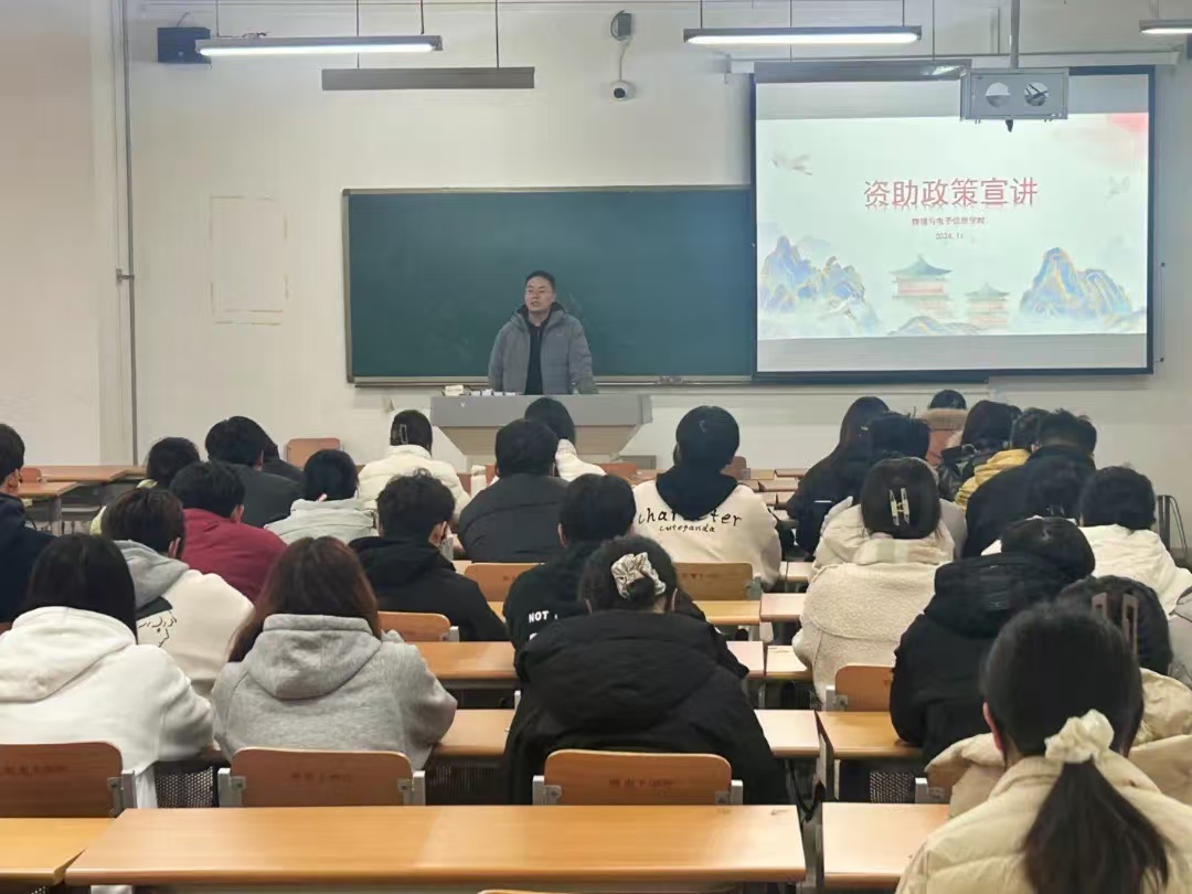 赵老师主要从奖、助、贷、勤、免、补、减等几方面向学生介绍了国家资助体系和学校资助内容,并依据中华人民共和国财政部刚发布的《关于调整高等教育阶段和高中阶段国家奖助学金政策的通知》(财教(2024)181号)文件,重点重点讲解了2024年国家奖学金、国家励志奖学金以及国家助学金的金额调整、申请条件、评定流程、评审发放等内容。同时赵老师强调同学们要常怀感恩之心,珍惜来之不易的学习机会,不辜负党和国家的厚爱,努力提升自己,以自己的学识和能力回报祖国,成为国家建设的栋梁之材。