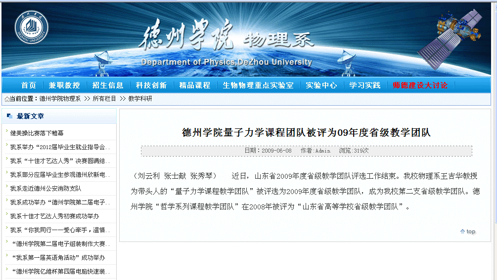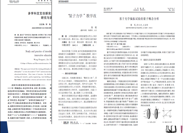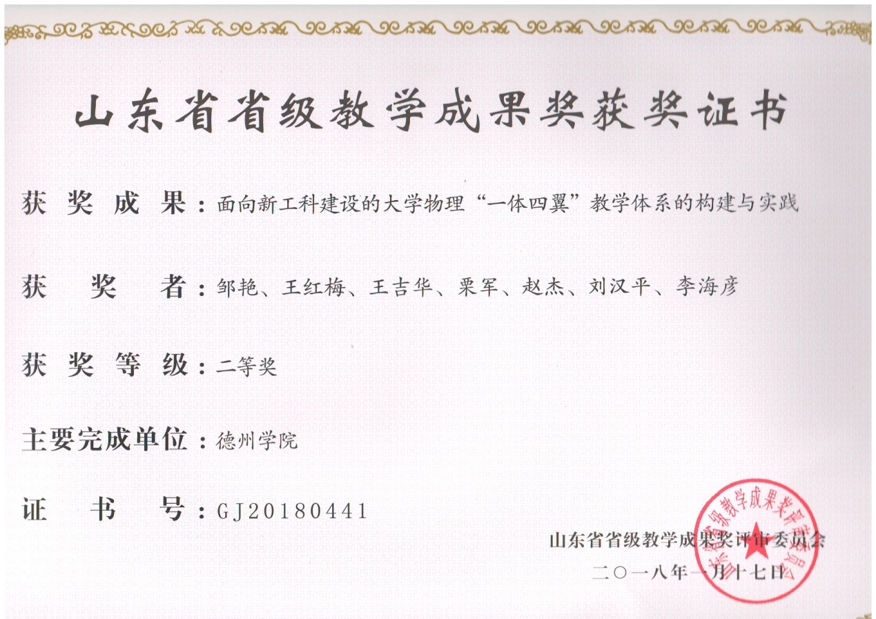 物理学(师范)专业专任教师在多年的教学过程中,不断更新教学理念,注重科研与教学的动态结合,在教学和科研方面都取得了一些成绩。