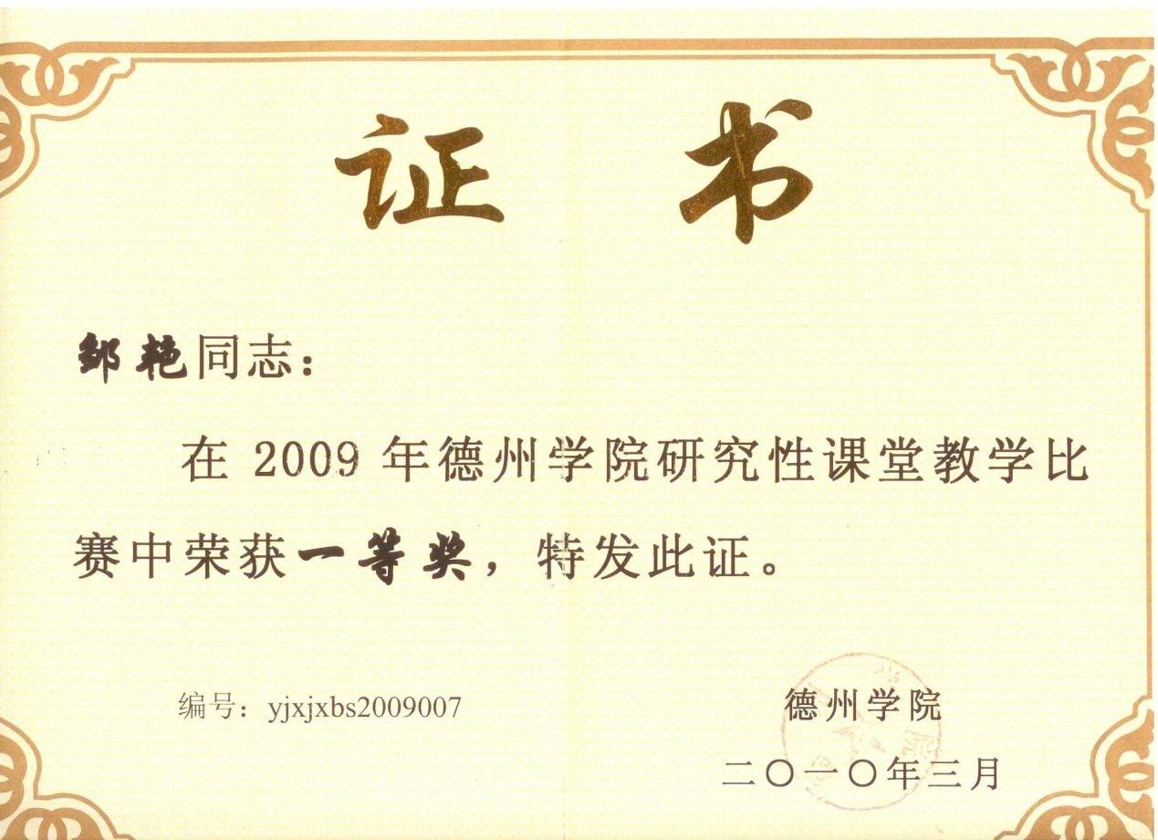 物理学(师范)专业教师在积极进行科研和教学的同时,将科研成果应用于教学,形成了教学研究成果,多项成果获校级以上奖励。教学研究成果既体现了物理学专业教师的教学理念和对专业教学的认知,也体现了以学科发展促进专业教学的发展过程。物理学专业教师积极参加各类教学大奖赛,获得多项奖励,表现出良好的教学能力。