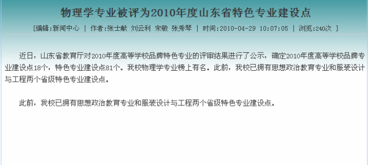 物理学(师范)专业注重对学生教学技能的训练,不但在授课中讲授相关教育教学理论知识,还邀请德州市中学名校长和优秀教师为学生们做有关教学的报告、同时邀请兼职教授和兼职老师进行实践指导。