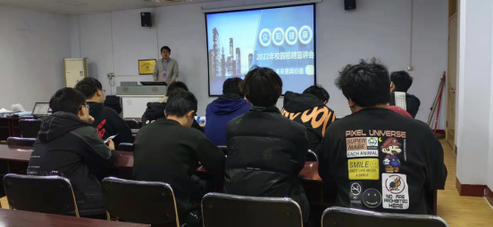 在招聘会现场,招聘单位采取了播放宣传片、PPT文档介绍、面对面交流等方式同学们介绍了公司简介、公司布局、公司发展历程等方面。最后针对同学们提出的疑惑,公司相关人员一一作了解答,同时对学生进行了现场面试。
