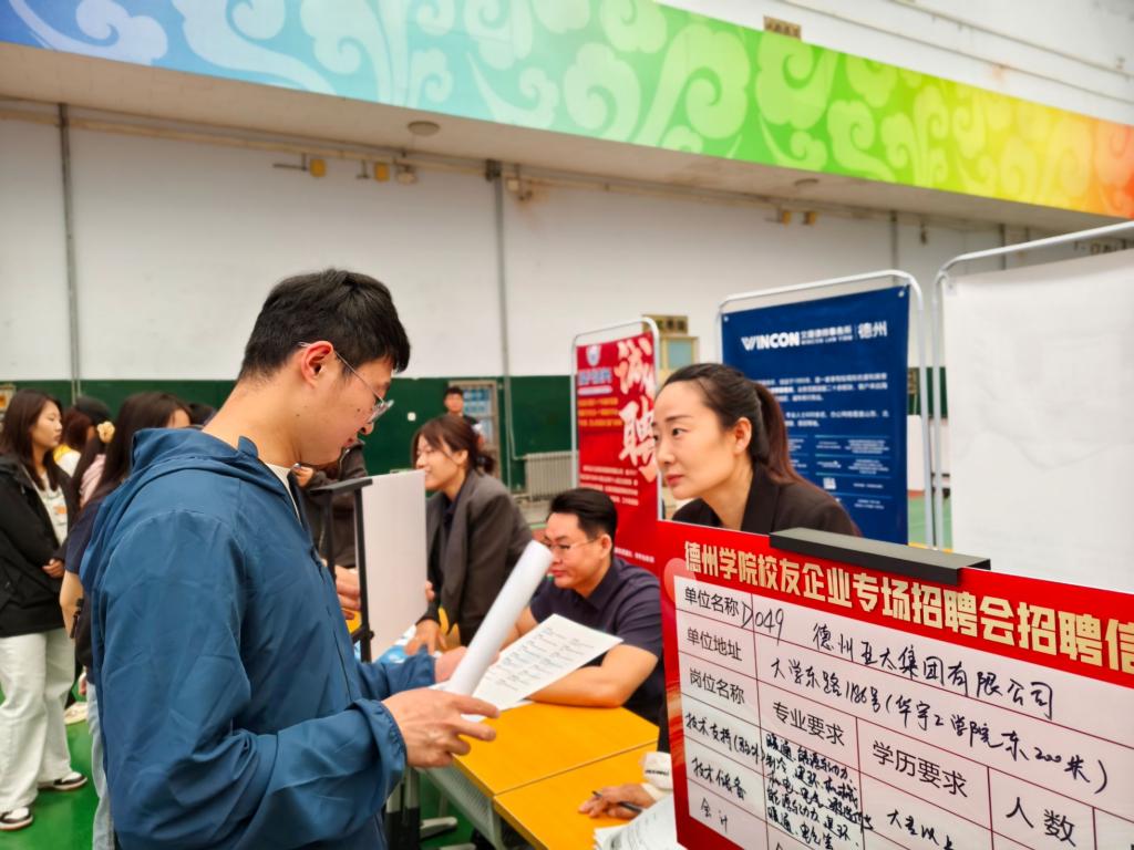 为深化校企合作,拓宽毕业生就业渠道,给2025届毕业生提供优质的就业机会和广阔的发展平台,德州学院beat365在线唯一官网于5月9日在体育馆内组织2025届毕业生参加校友企业专场招聘会,学院老师亲临招聘会现场调研指导,为活动顺利开展保驾护航。