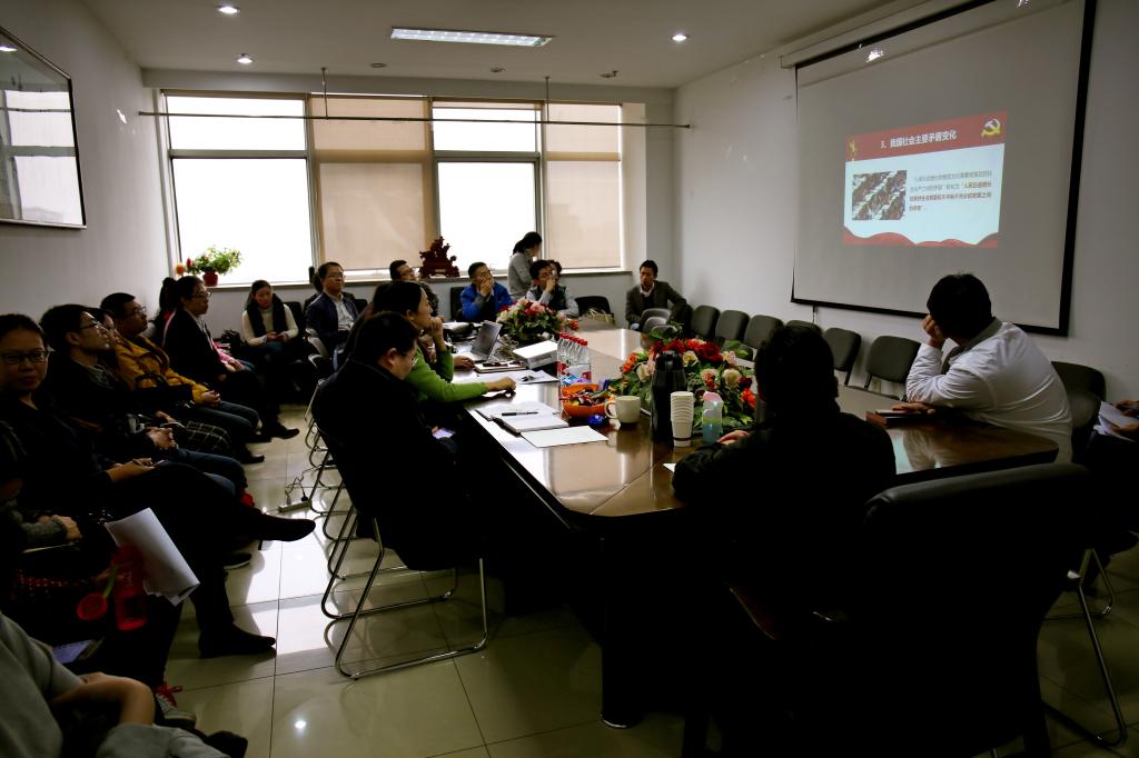 首先,全体与会成员学习了《中国共产党第十九次全国代表大会报告》在政治、思想、理论、实践、历史上的重要意义和地位。党的十九大精神高举旗帜、立论定向,把握大势、总揽全局,作出了“中国特色社会主义进入新时代”的重大判断,提出了具有全局性、战略性、前瞻性的行动纲领,具有划时代的里程碑意义。之后,在杨琼书记的带领下,对党的十九大报告的13个部分6大板块进行了学习。与会教师就党的十九大报告中40个新提法新举措开展了热烈讨论。