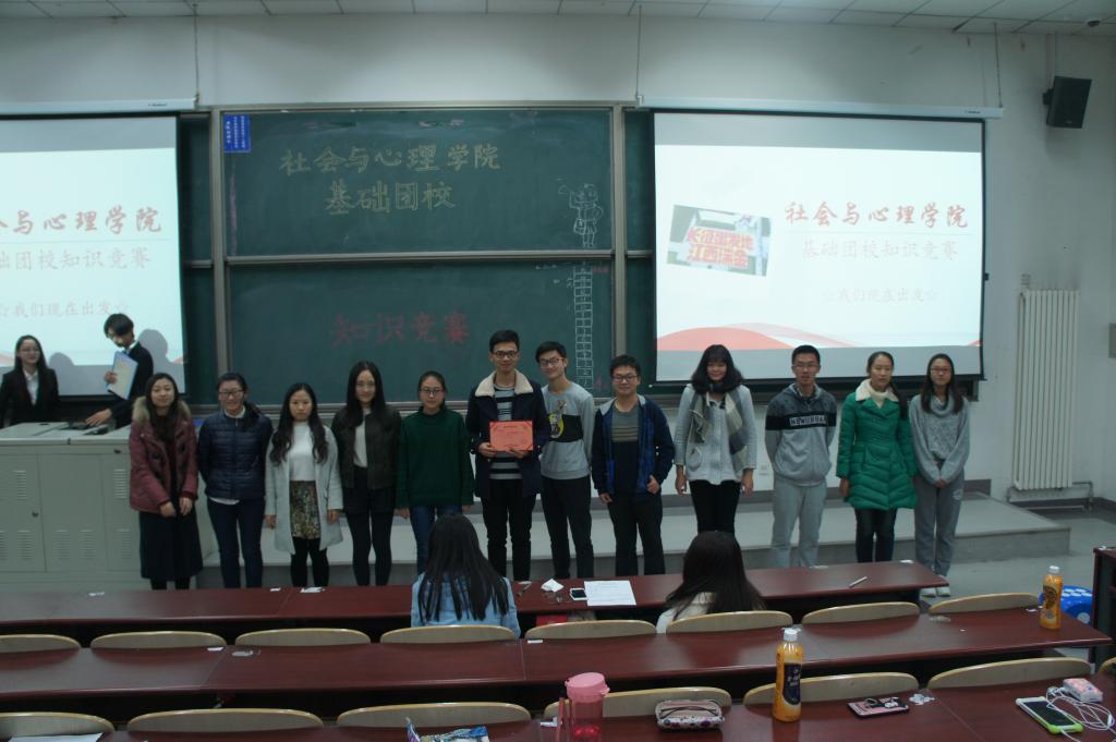 2016年11月11日,350vip8888新葡的京集团组织开展了“基础团校知识竞赛——我们现在出发”团学活动,旨在丰富同学们的党团知识,让同学们对党团的历史有新的理解。学院团总支书记胡博老师、辅导员司晴老师、团总支第一团副王晓蝶同学、芮+导师何光明同学出席了本次活动。