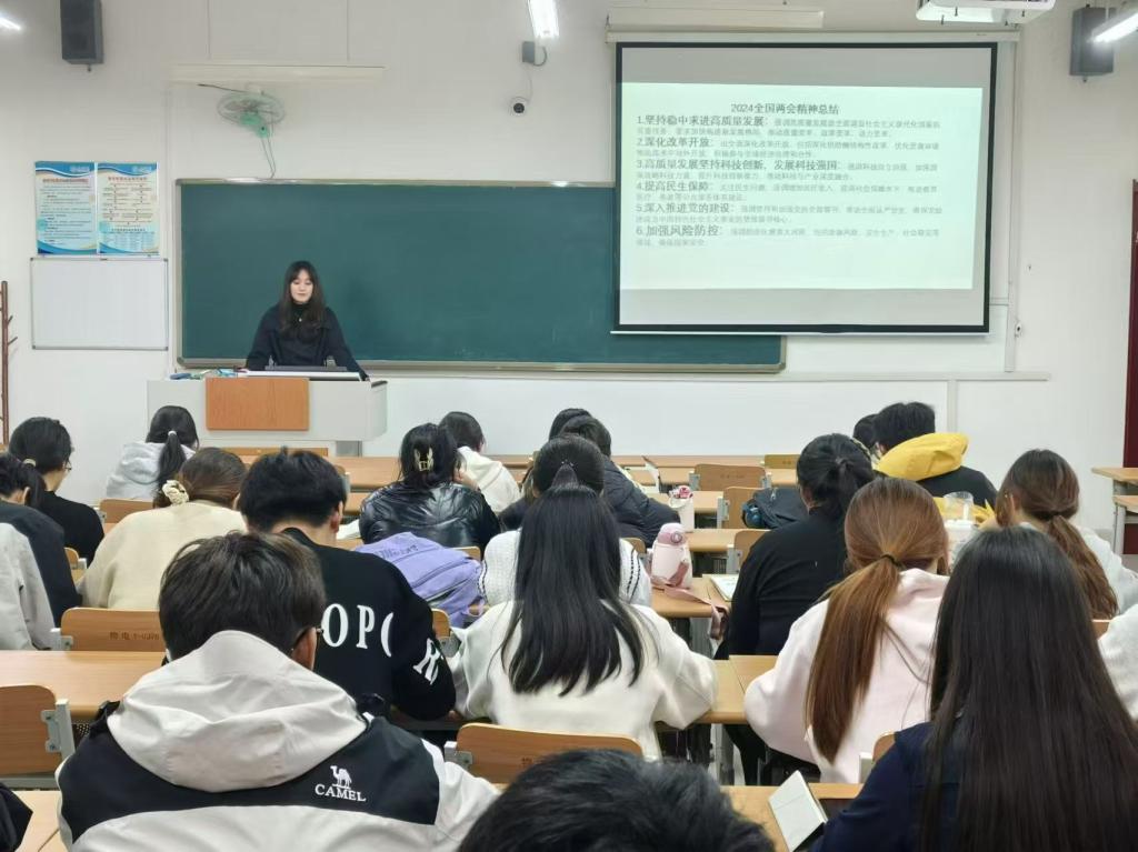 宋言昕老师详细阐述 2024 年全国两会精神,同学们聚精会神地学习,了解国家的发展规划与政策方向,意识到青年在国家建设中的重要责任,入团积极分子的信仰更加坚定,责任感显著增强,为日后更好地服务团组织奠定了坚实基础。