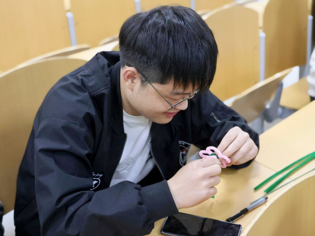 活动伊始,同学们纷纷将内心的问题书写于纸上并折叠成纸飞机,捡到的同学则以真挚的态度回应每一个问题,促进心灵的交汇与碰撞。在DIY郁金香环节中,同学们沉浸在安静温馨的氛围里亲手制作郁金香,不仅锻炼了动手能力,更在创作过程中释放了内心的压力,舒缓了心情。整个活动在欢声笑语与温馨安静中交织进行,为大家带来了难忘的回忆。