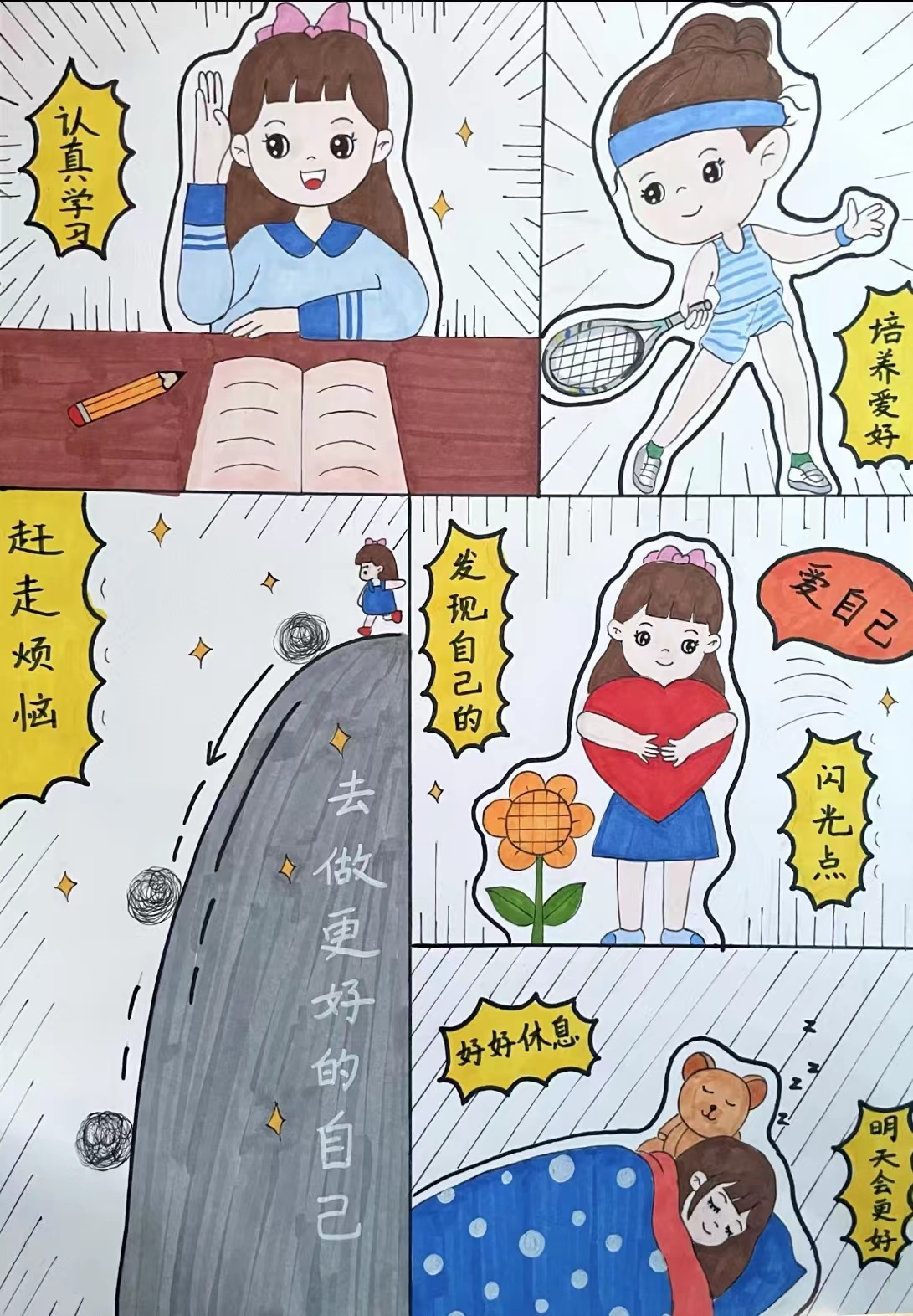 同学们围绕心理健康主题,用生动的插图和精炼的文字,展现情绪管理方法、讲述心理健康故事、分享心理调适技巧。