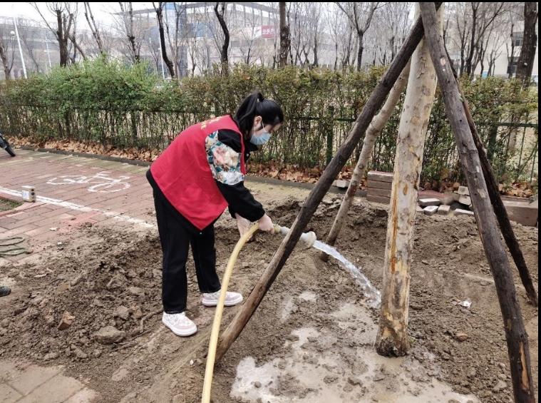 即便是阴雨天气,志愿者们仍展现着不同一般的热情,他们满怀激动的到达植树地点。在环卫工人们的指导下,他们合理分工,团结协作,依次进行着挖坑、填土、栽植、浇水、固定。经过一个多小时,虽然有些疲倦,衣服也溅上了泥渍,但他们仍埋头苦干,乐在其中。每一滴汗水的流下,每一铲泥土的填充,代表着每一个人的奉献与关爱。