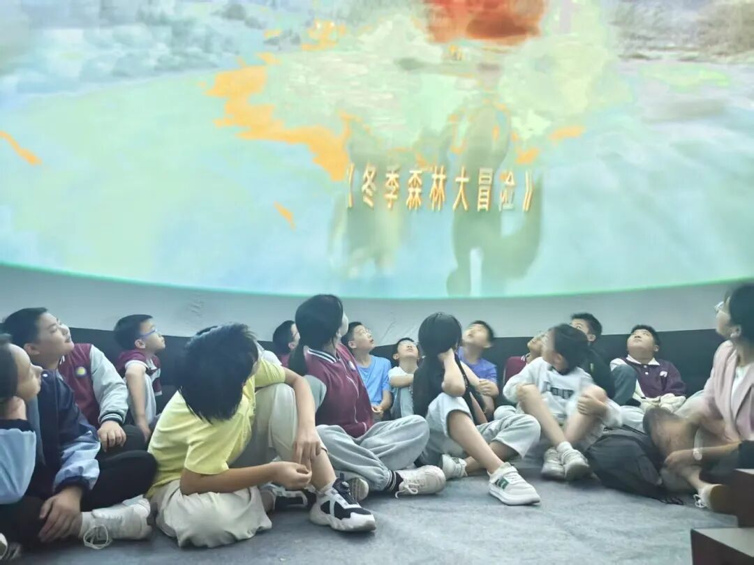 在天文馆科普报告厅,志愿者以“探秘浩瀚星空”为主题,借助高清影像系统讲解恒星演化、行星运行等基础知识,内容兼具专业与趣味,迅速吸引了孩子们的注意力。活动中,志愿者向每位学生发放天文科普绘本,并耐心解答“星星为什么不会掉下来”等问题,用通俗语言拆解复杂原理,让遥远的天文知识变得贴近生活。宣讲结束后,志愿者带领孩子们分组参观天文馆,引导他们近距离观察行星模型、体验模拟太空舱,并用生动比喻解读展品背后的科学奥秘,将抽象知识转化为直观感受。在球幕影院,志愿者协助维护秩序,陪伴孩子们沉浸式体验“穿梭银河”的奇妙旅程,现场惊叹声不断,科学探索的种子在孩子们心中悄然生根发芽。