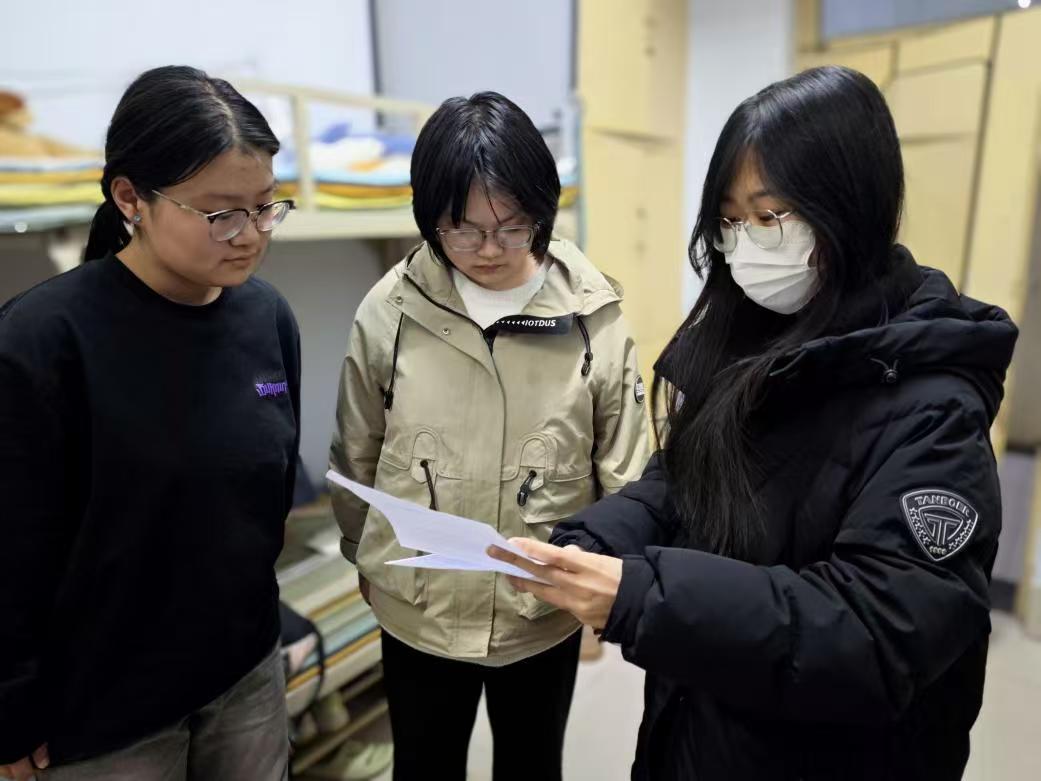 活动当天,各位学长学姐以“朋辈引领”的角色深入学生宿舍,开展零距离征兵宣讲。他们围绕部队选拔培养政策、考研加分政策,以及应征入伍的学费代偿等优惠政策,结合自身理解展开生动解读。这种“浸润式”的宣讲打破了“照本宣科”的模式壁垒,同学们积极向学长学姐询问政策相关内容,打破了对退伍即失业的刻板印象,扭转了自身的认知误区,将其从抽象概念转化为可触摸的人生选项,更加明确了自身的人生方向。