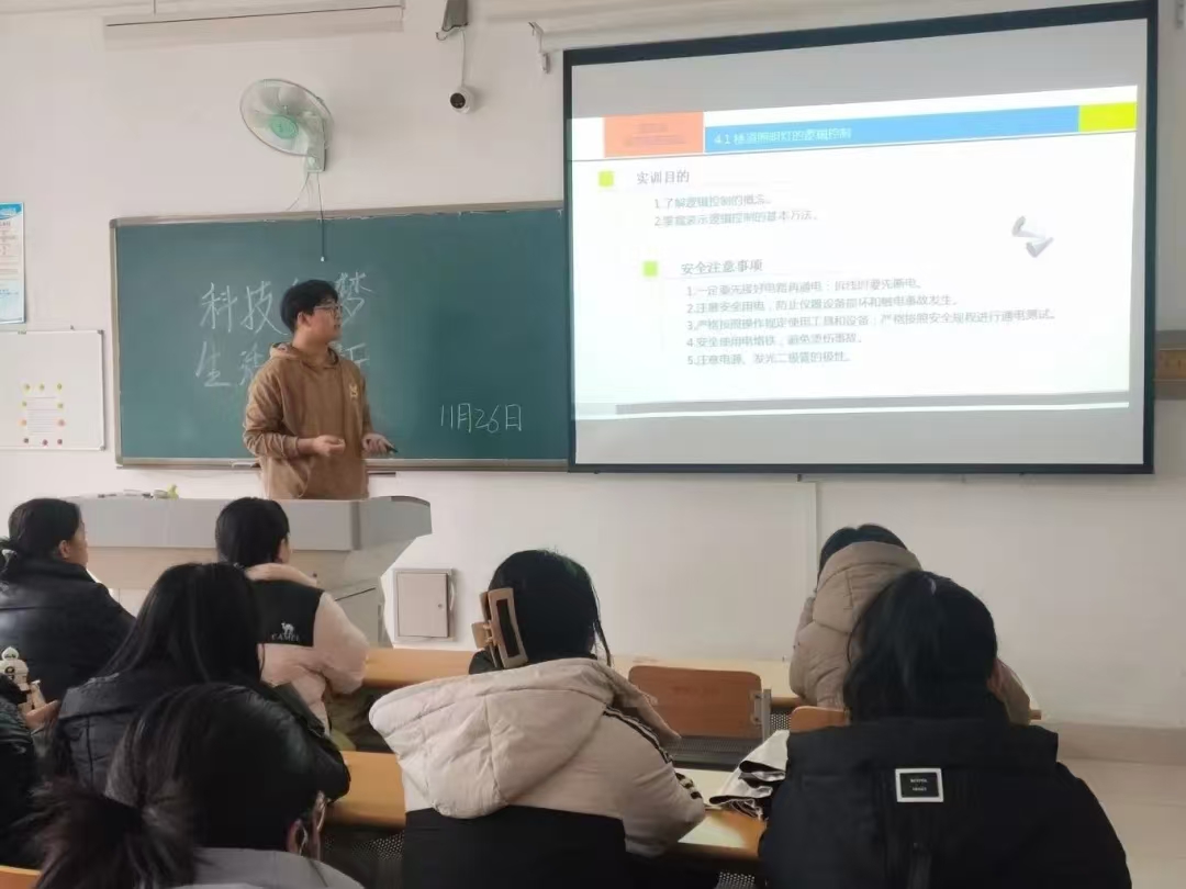 活动中,社团负责人从楼道照明灯的逻辑控制,数字信号与数字电路,逻辑门电路三方面向同学们剖析了数字电路基础等方面的知识,通过生动地讲解和丰富的实例,向同学们展示了电子科技的魅力和广阔的应用前景。参与讲座的同学们表示,此次讲座让他们对电子科技有了更深入的了解,激发了他们探索科技、创新实践的热情,也更加明晰了未来在科技创新道路上的努力方向。