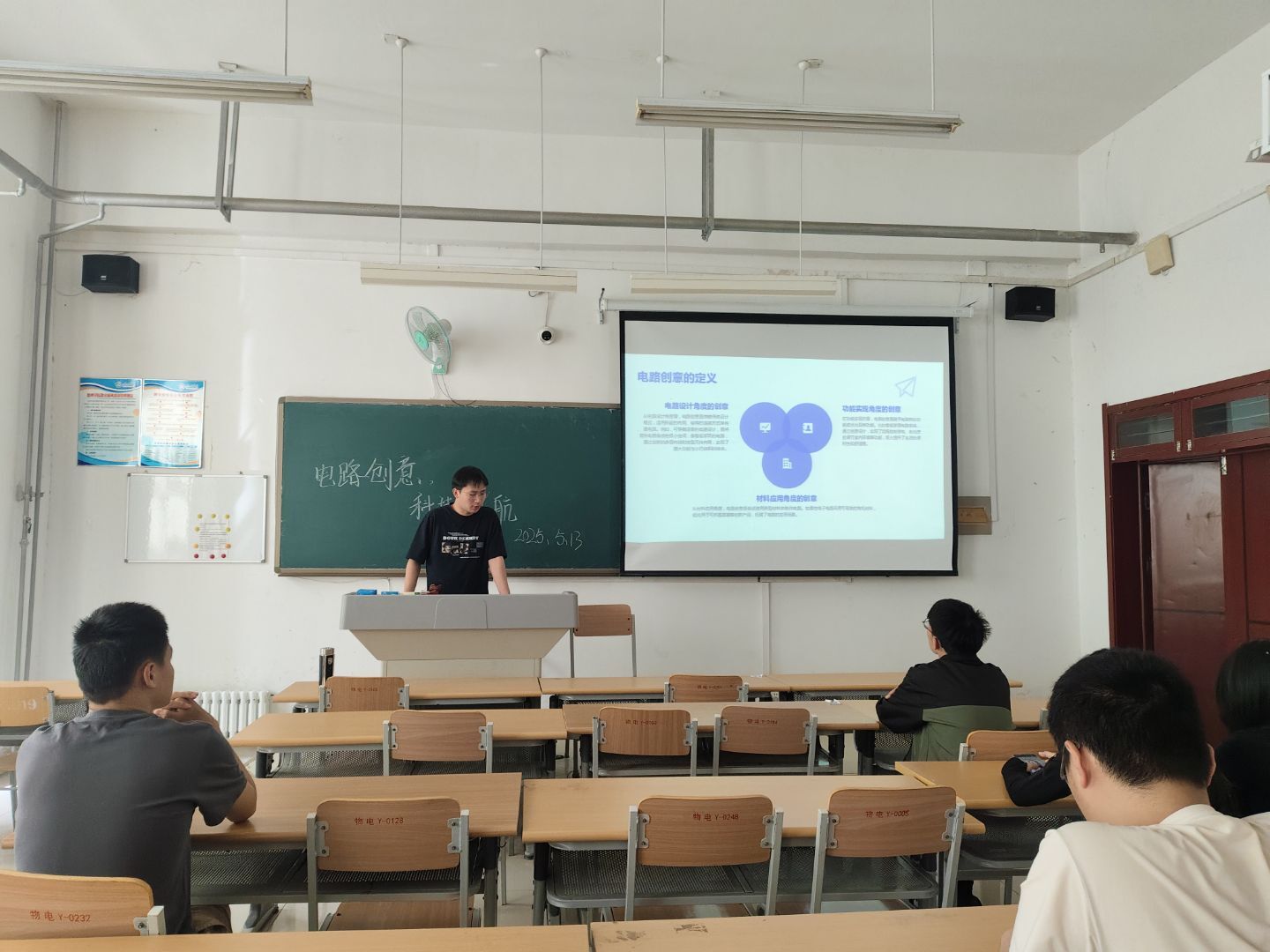 活动中,主讲人以“电路设计、功能实现、材料应用”三大创意维度为切入点,系统阐释电路创意的核心定义,深入剖析其在科技迭代、产品创新及领域拓展中的关键作用。通过串联早期电路技术演变与当下前沿发展,引导同学们思考行业变革逻辑。针对创意类型,主讲人重点区分“节能型、智能型、环保型”三类电路创新模式,结合实际案例解析技术特点与应用场景,帮助学生建立立体化认知。在创意方法论环节,主讲人围绕“头脑风暴法、逆向思维法、组合创新法”展开实操讲解,通过互动问答与场景模拟,引导学生突破思维定式。现场氛围热烈,同学们积极参与案例分析,深入理解从理论构思到技术落地的创新路径。