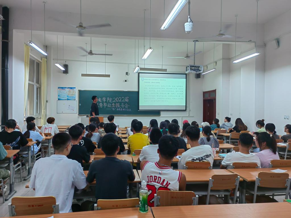 为贯彻落实教育部“2022届全国普通高校毕业生就业创业促进行动”的相关要求,激励和引领全体同学走向成功之路。5月28日,beat365在线唯一官网在明理楼0227举办优秀学子报告会,由预毕业生18级物联网工程孙潇龙同学,物联网工程许胜博同学主讲。