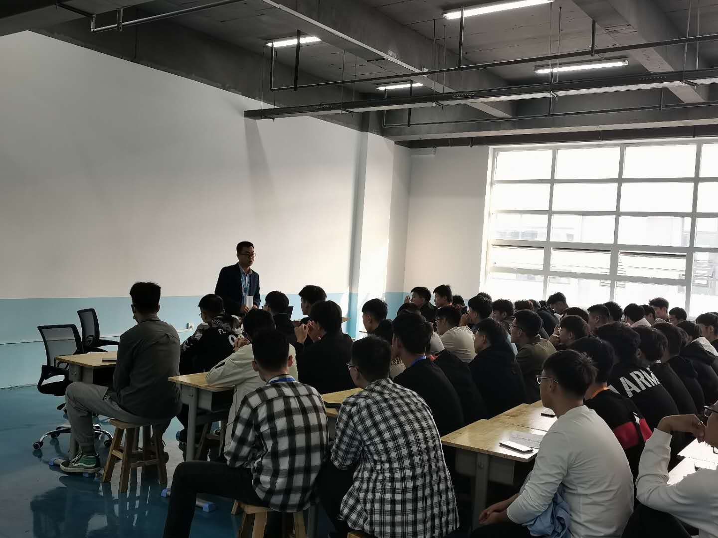 下午,实训开班仪式在中兴教育日照基地隆重举行,基地成员分别从中兴教育发展历程、教学配套设施、实训课程安排以及校企合作四个方面向同学们做了详细的介绍。中兴教育日照基地是山东中兴教育咨询有限公司建设的新一代信息技术公共实训基地,基地拥有22个实验室及体验中心涵盖通信技术、物联网、人工智能、大数据等全领域,以及教室、操场、餐厅及户外拓展基地等完备的配套设施。