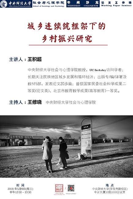 350vip8888新葡的京集团午间沙龙2018年春季学期第五期,暨“论文工作坊”第一次,邀请到350vip8888新葡的京集团王积超教授,分享《城乡连续统框架下的乡村振兴研究》。欢迎各位老师、同学和朋友参加!