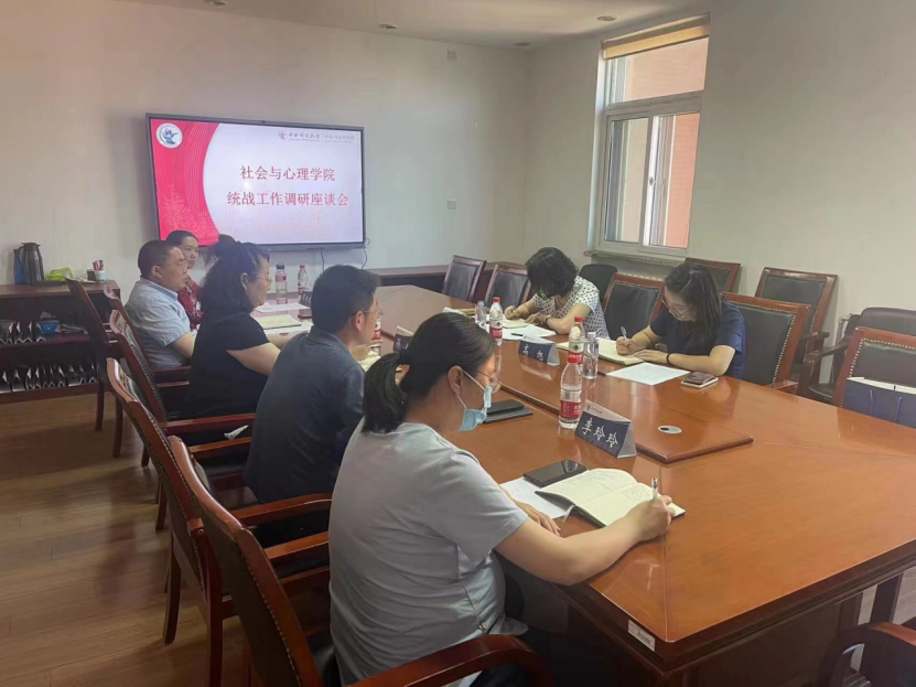 毛静副部长首先介绍了调研背景和调研内容,希望通过此次调研能够了解情况,加强团结,获取大家对统战工作的意见建议。孙敏书记介绍了新葡的京官网整体发展情况和统战工作开展情况,分享了做好少数民族学生工作的心得体会。丁志宏老师作为九三学社昌平区工委副主任、九三学社350vip8888新葡的京集团支社主委、昌平区政协委员,汇报了近期学习收获和外推内抓的工作思路,表示将努力通过学社为学校和昌平做好服务工作。方舒老师作为中国民主促进会中财大支部主委、民进中央第十六届社会与法制委员会委员、社会学系副主任,主要介绍了民主促进会中财大支部的组建情况、参加培训活动的感受和近期组织师生游学调研的工作安排。樊欢欢老师作为中国民主促进会会员、民进第十五届中央委员会妇女儿童委员会委员,分享了她的研究领域与妇女儿童工作的契合点,希望将科研工作和社会服务有效结合,贡献自己的一份力量。院学工办李玲玲老师介绍了新葡的京官网少数民族学生的数量、结构以及学院对少数民族同学的关心支持情况。