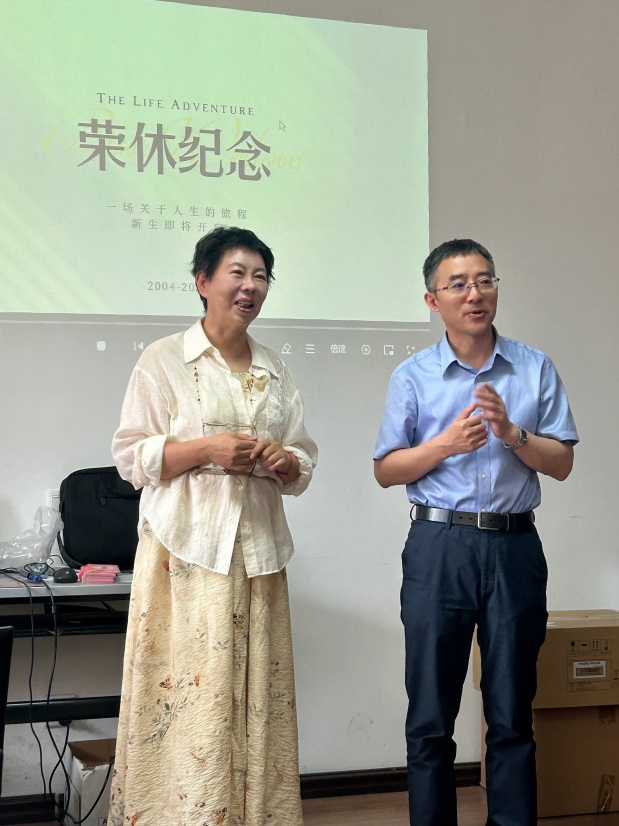 最后,会议举行了冯源源老师的荣休仪式,学院领导冯源源老师的付出表示衷心的感谢。大家共同回顾了冯老师多年来在教学和科研方面的突出贡献并表示高度的赞扬与肯定,大家也纷纷送上了美好的祝福与祝愿,现场气氛温馨感人。