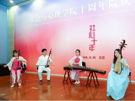 院庆仪式开始后,在校生向各位嘉宾和校友献上了优雅的民乐、美丽的舞蹈和动人的歌声。随后播放的“温暖社心、十年旅程”的视频,回顾了学院的成长历程,重温了师生的深情厚谊。
