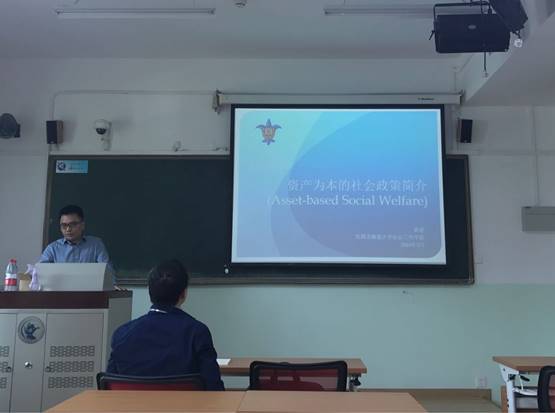 此次讲座开始阶段,黄进老师花费一个半小时的时间向大家系统的介绍了资产为本的社会政策,其主要内容包括:第一、资产建设实际上是一种社会资源再分配的变动,从累退式变为累进式,允许将资金转换成其他未来可产生收入的形式。其接受资源分配的主体主要是低收入人群,主要目的是为了个体的经济增长以及满足个人的发展需求以及适应后工业信息时代的现实需求。第二、现阶段针对穷人的社会政策主要是以收入为主的帮扶政策。资产建设主张对穷人进行金融教育,普及金融知识,实行财富积累以满足未来需求,帮助收入贫困的家庭持有财产。实际上,收入与资产之间是高度相关的,收入是一定时间内经济资源的流入,而资产就是没有进行消费的收入积累起来的结果。第三、资产为本的社会政策其基本理念就是主张个人通过努力,政府和社会给予一定的支持与帮助,积累财产用于满足自身及其家庭的发展需求。当然,资产建设并不是只是鼓励人们进行储蓄,政府或者社会组织会对个体进行金融知识的培训,提供公共和社会支持。除了进行储蓄之外,还可以根据自身情况进行其他投资。唯一的限制就是只能用于房产、创业、大学教育、退休金投资等,不可用于日常消费。在整个生命历程中要始终保持资本的不同形态。资产建设不仅可以增加收入,减少贫困,从个体心理发展的角度上来说还可以增强人体的幸福感、安全感以及面对未来的信心;从社会发展的角度来说可以促进家庭稳定,社会和谐以及政治参与。
