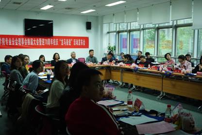 2019年4月27日上午,350vip8888新葡的京集团专业分会理事会换届大会暨迎70周年校庆“龙马奋进”活动发布会在学院南路校区中财大厦二层案例教室一举行。学校校友总会秘书长安秀梅,北京校友会会长刘志忠,本届校友分会副会长姜涛以及350vip8888新葡的京集团党委书记李跃新,院长辛自强,副院长丁志宏、李国武,组织员杨琼等师生代表出席大会,各地区、各行业的校友代表以及院系所及职能部处的领导老师40余人参加会议。会议由本届校友会秘书长杨中英主持。