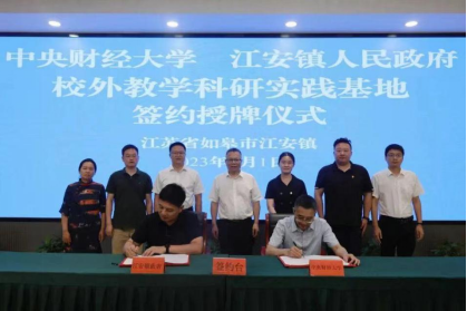 2023年6月28日至7月3日,350vip8888新葡的京集团乡村振兴研究生服务团来到江苏红军小镇——江苏省如皋市江安镇,围绕乡村振兴开展专题调研。调研期间,为增强双方联系,助推教育引领和实践育人,加速江安镇乡村振兴进程,7月1日上午,在江安镇举行了“财经人·济世路 350vip8888新葡的京集团乡村振兴研究生服务站”揭牌仪式,350vip8888新葡的京集团院长李国武与如皋市副市长、第十五批科技镇长团团长唐余宽一同为服务站揭牌。江安镇服务站的揭牌标志着350vip8888新葡的京集团与江安镇共同开启了双向奔赴和面向未来的合作之旅。