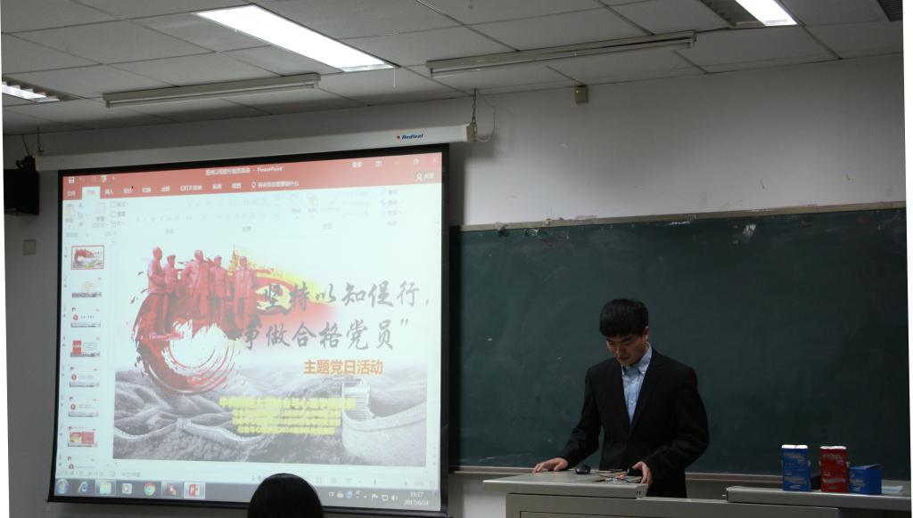 为进一步贯彻落实党的十八大和十八届三中、四中、五中、六中全会精神,深入推进“两学一做”学习教育常态化制度化, 同时为庆祝中国共产党成立96周年,教育引导党员坚定信念、勇于担当,2017624日晚,350vip8888新葡的京集团党委积极组织各党支部共同开展了“坚持以知促行,争做合格党员”主题党日活动。参与本次活动的有350vip8888新葡的京集团2014级本科生党支部、350vip8888新葡的京集团2016级研究生学硕党支部以及350vip8888新葡的京集团2016级研究生专硕党支部,此外还有来自各个班级的积极分子和积极向党组织靠拢的群众。本次活动的主持人是来自2014级本科生党支部的沙金地同志,他向大家介绍了本次活动对于一名党员的意义,慷慨激昂的开场陈词引得大家掌声阵阵,活动也在掌声中正式拉开序幕。